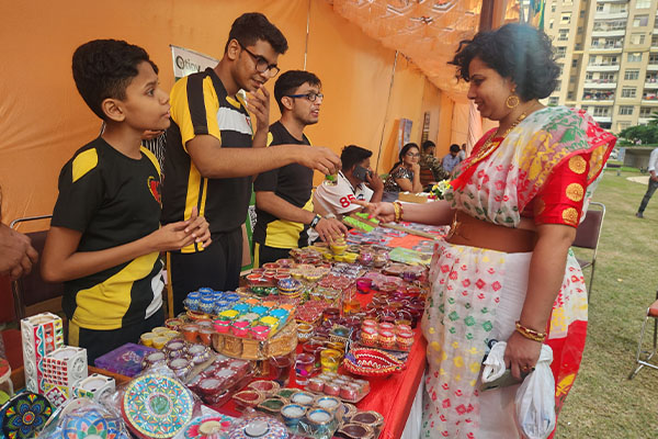 On 2nd October 2022 (Sunday), On the occasion of Navratri one of our parents invited our students in their society to put up a stall & showcasing our products.