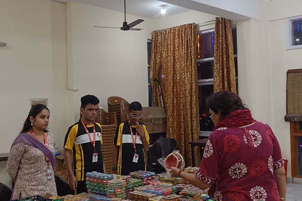 The Stall featured beautiful diyas, festive decorations, and other uniqe items for Diwali.The students ngaged warmly with visitors, explaining how each product was created and the effort behind it.